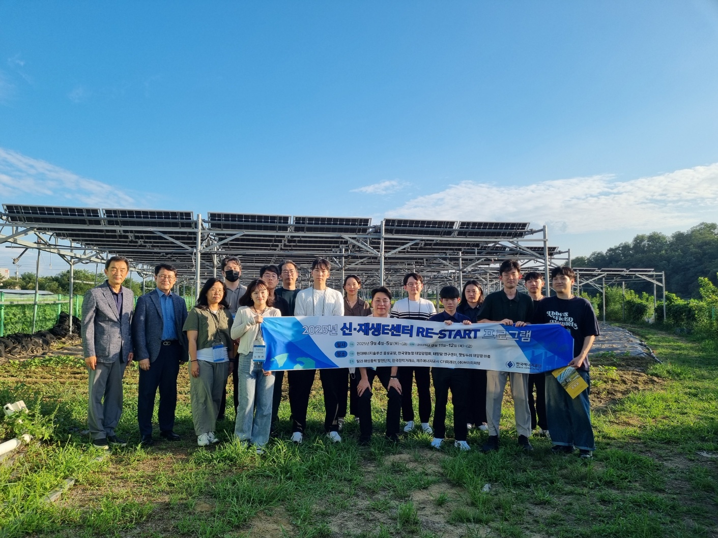 한국에너지공단의 직원분들 재생에너지 현장 견학의 일환으로 충북 청주 오창의 영농형태양광 실증단지를 견학하고 영농형태양광 현황에 대한 교육을 받았습니다. 우리나라 신재생에너지 보급에 힘쓰시는 한국에너지공단 직원분들이 영농형 태양광에도 많은 관심을 가져주셔서 감사합니다.